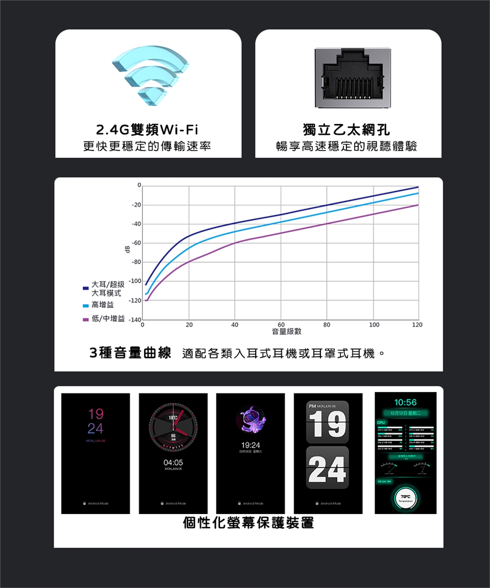 無線傳輸:Wi-Fi 2.4GHz,支援DLNA發射與接收、AirPlay、Wi-Fi傳歌、Roon Ready等