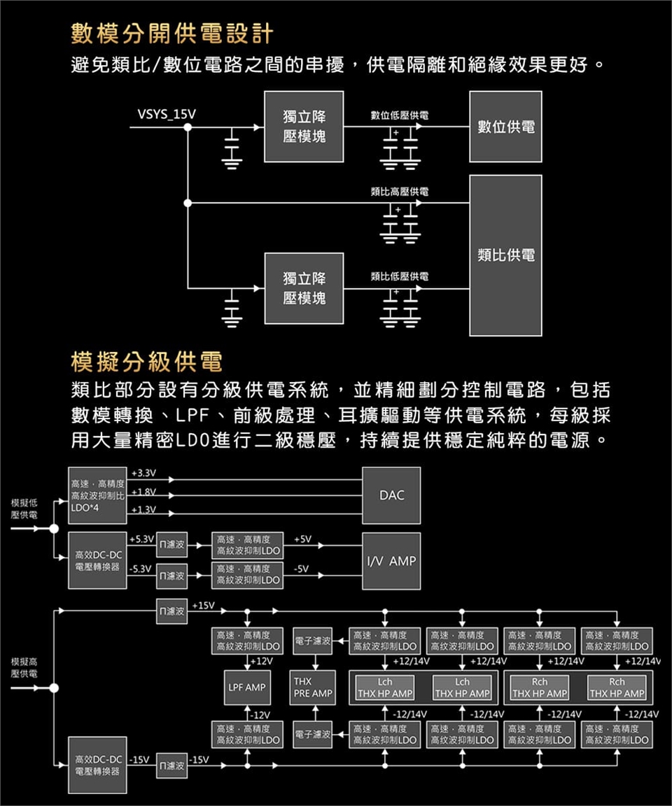 失真加噪聲:6.35mm耳機輸出(超級大耳模式)<0.00025%(1kHz/-1.1dB@32Ω)