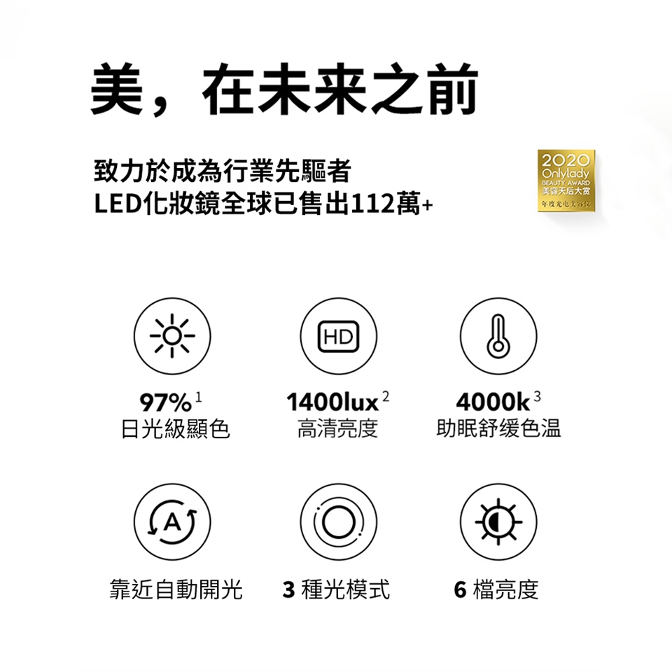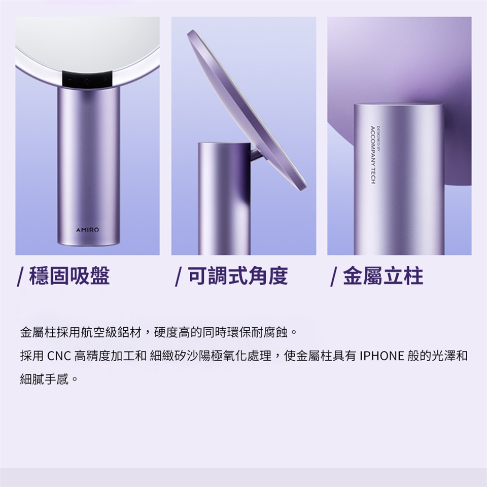 品名:【AMIRO】Oath自動感光LED化妝鏡-愛意信使禮盒-暮山紫 產品尺寸:立柱直徑:6.4cm | 鏡面寬度:23.4cm | 高度:39.4cm 產品重量:1333g 包裝尺寸:450*275*110mm 包裝重量:2.26kg 材質:鋁合金立柱 、PC、ABS 產地:中國 售後保固:非人為因素保固一年 包裝內容物:本體*1、說明保固書、Type-C充電線、5倍磁吸式放大鏡 |