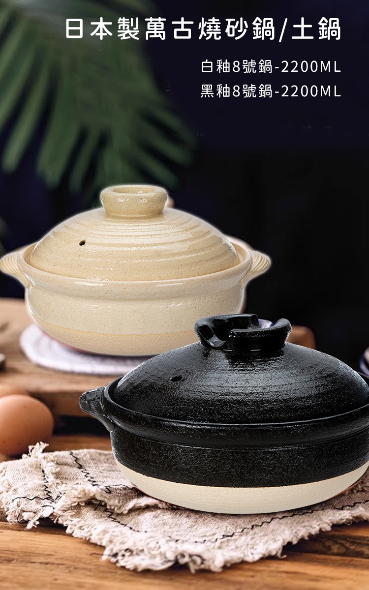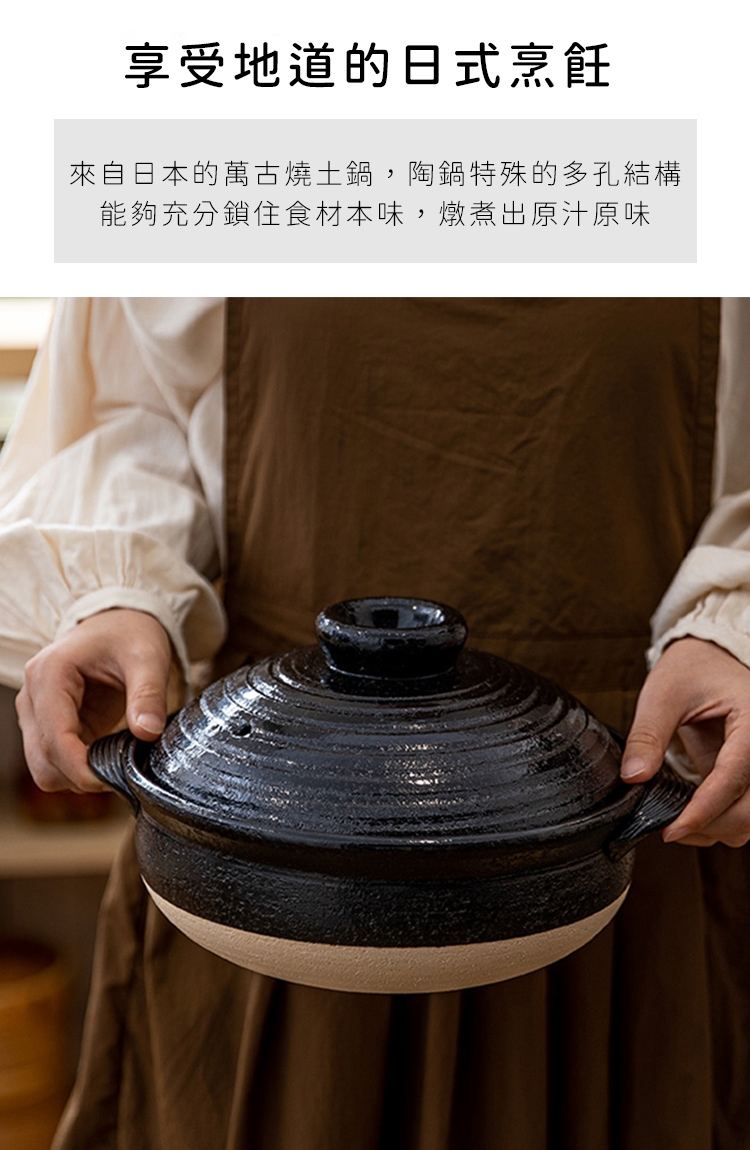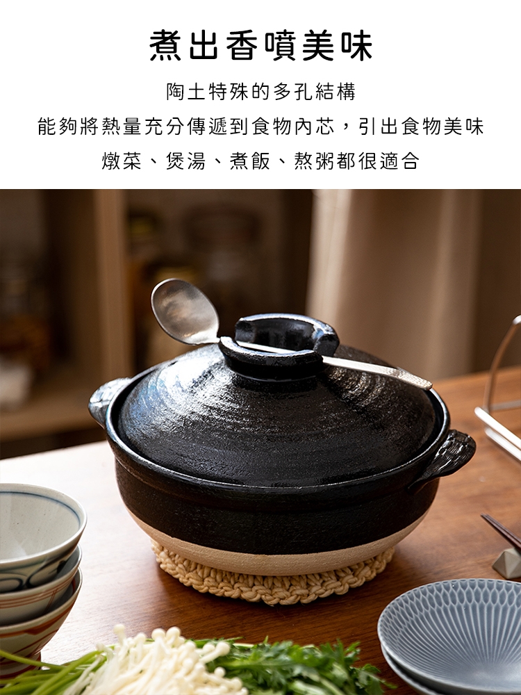 商品名稱:【日本利行】日本製萬古燒黑釉8號砂鍋/土鍋