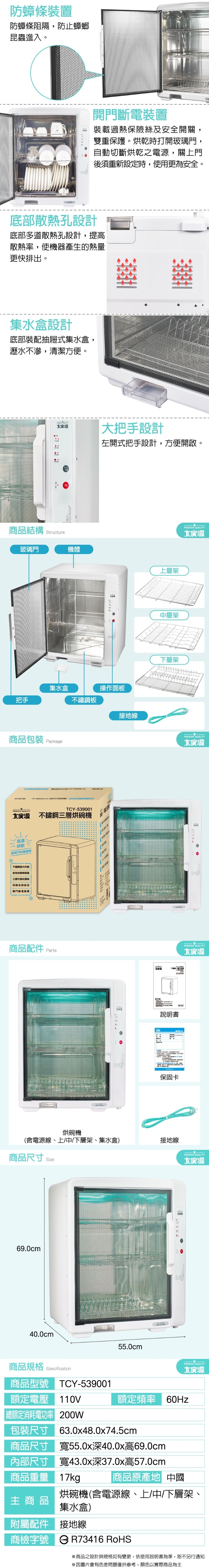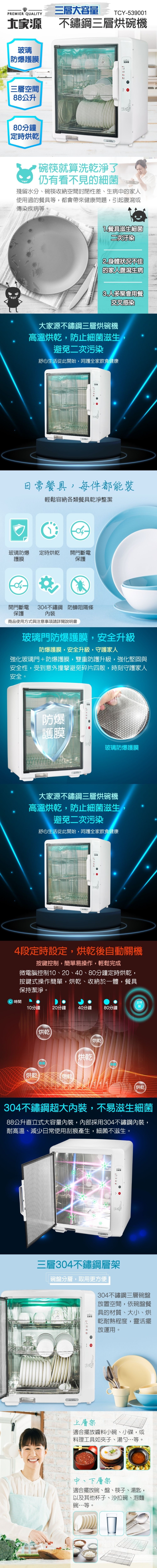 大家源 88L不鏽鋼三層烘碗機 TCY-539001