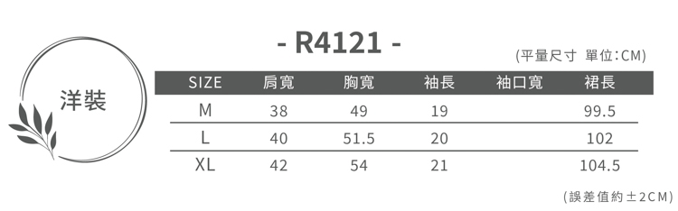 肩寬42公分 胸寬54公分 袖長21公分 裙長104.5公分