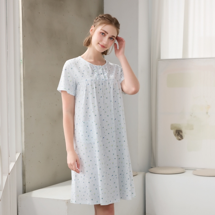 Rosemaid 羅絲美 - 花雨漫舞100%純棉半開釦短袖洋裝睡衣
