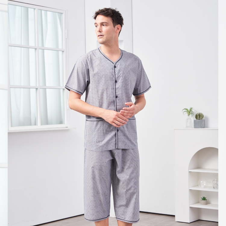 GOLDDEER金鹿 - 紳士潮格薄款100%純棉短袖七分褲睡衣-【M4405】