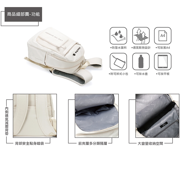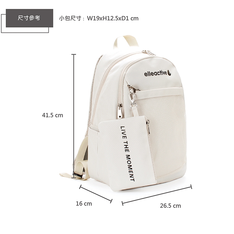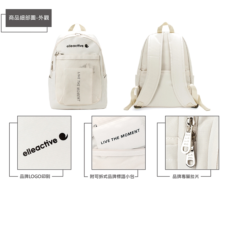 商品品名:【ELLE Active】活力隨行系列-後背包-中-米白色