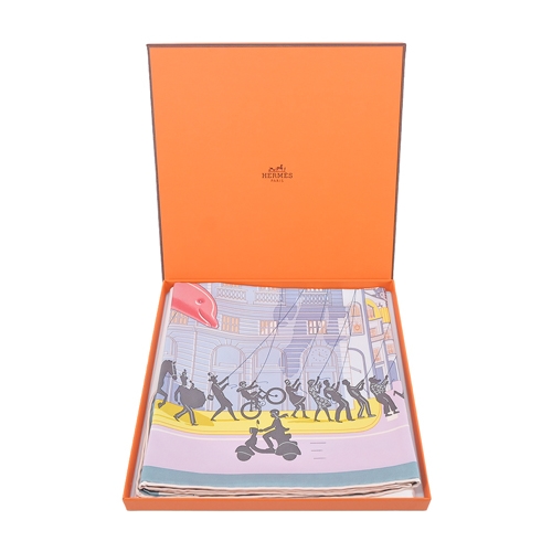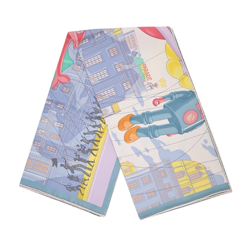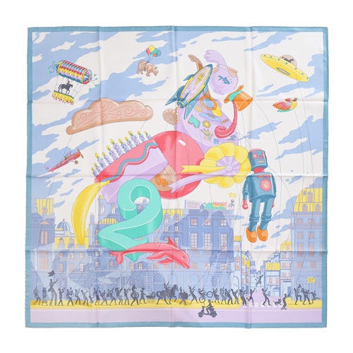 Hermes 愛馬仕 Hermès Parade 90 cm手工捲邊斜紋真絲方巾(白/藍/粉紅)