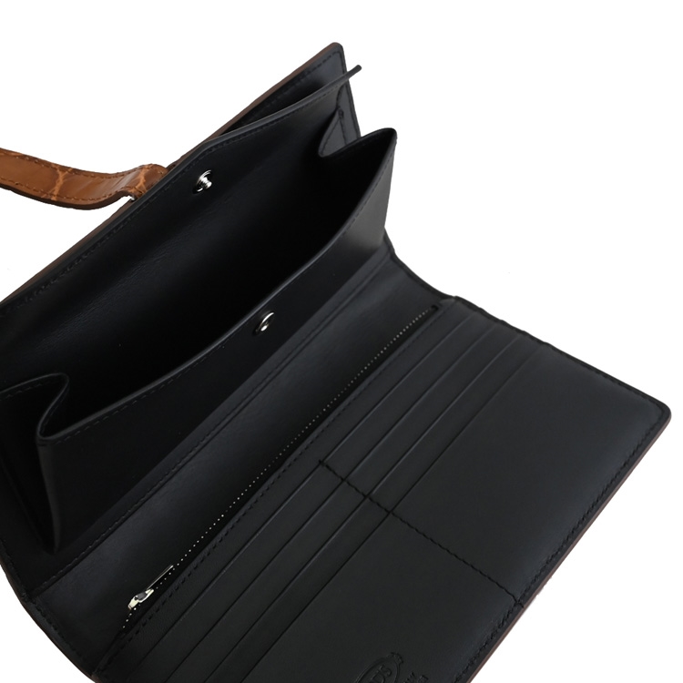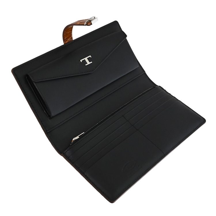 TODS 經典長夾,精緻手工車線,俐落簡約的造型,採用質感壓紋皮革搭配金屬LOGO/內襯牛皮材質,扣式開口/內有8信用卡夾層+1扣式風琴袋+3貼袋+1拉鍊零錢袋,展現簡潔都會概念,兼具典雅時尚氣質。