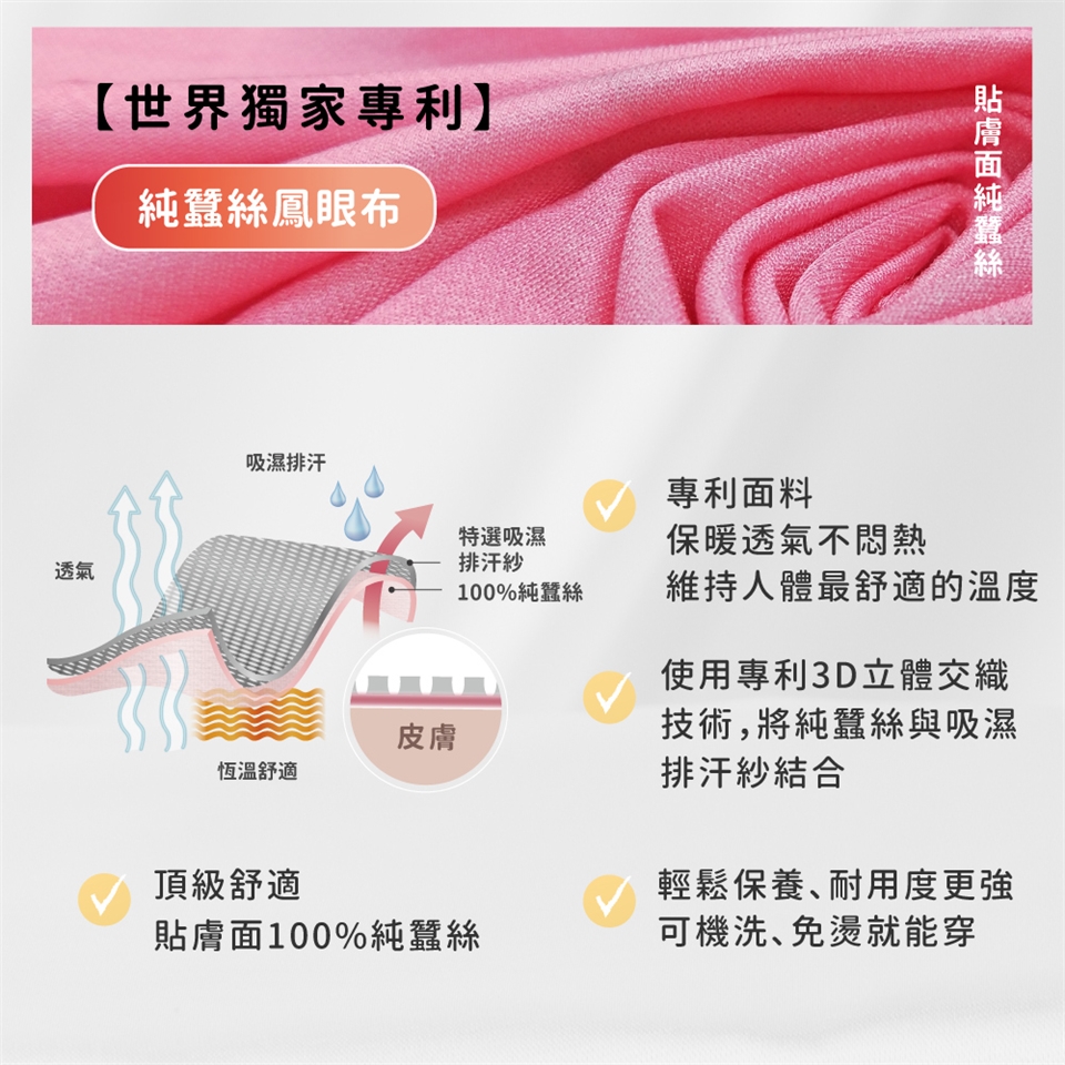 ► 請避免於太陽直射處曝曬,避免蠶絲纖維損壞。