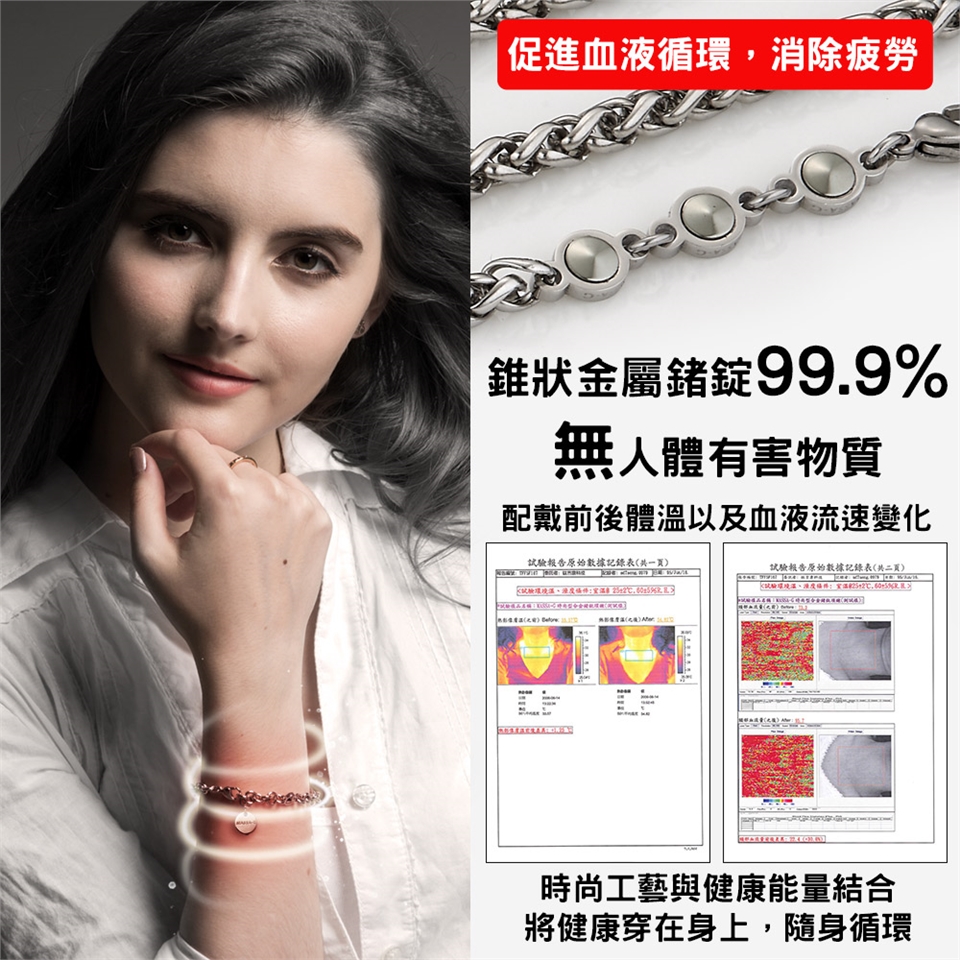 手環以純鈦搭配全金屬鍺製成,質感輕盈且堅固耐用。