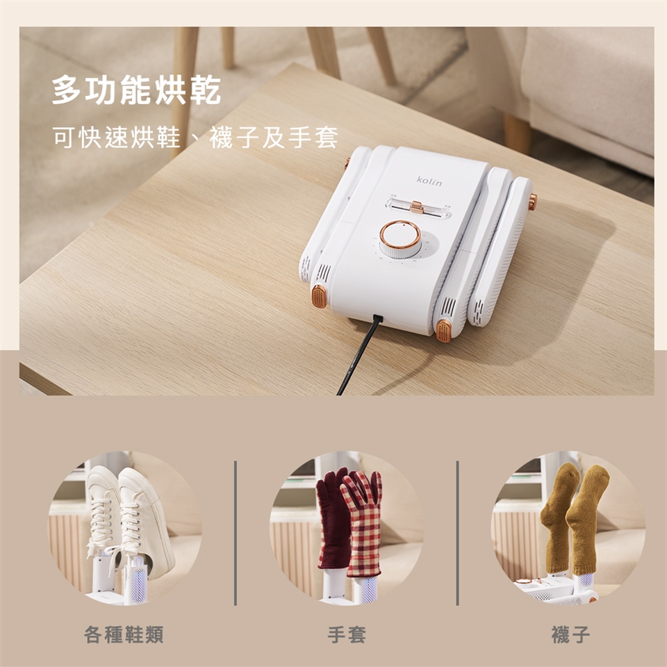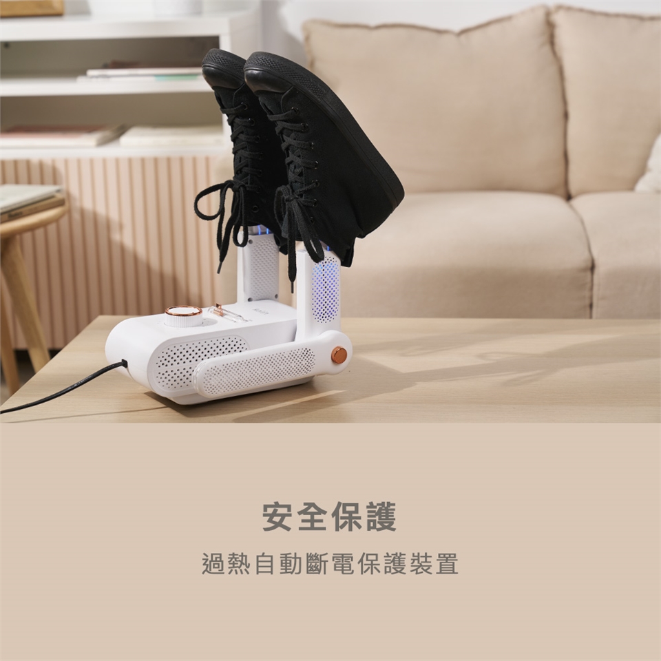 - 可快速烘鞋、襪子及手套,遠離濕黏、防止發黴。