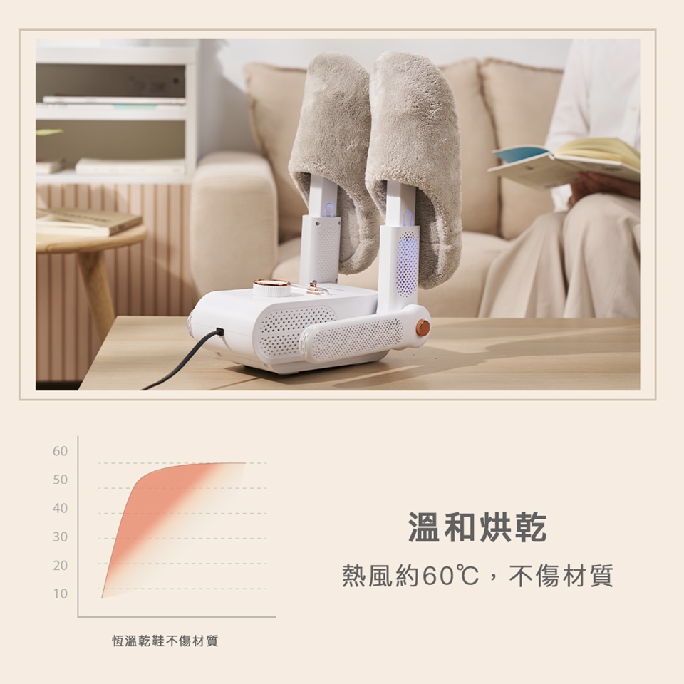 - 熱風溫度約60℃,溫和烘乾,不傷材質。