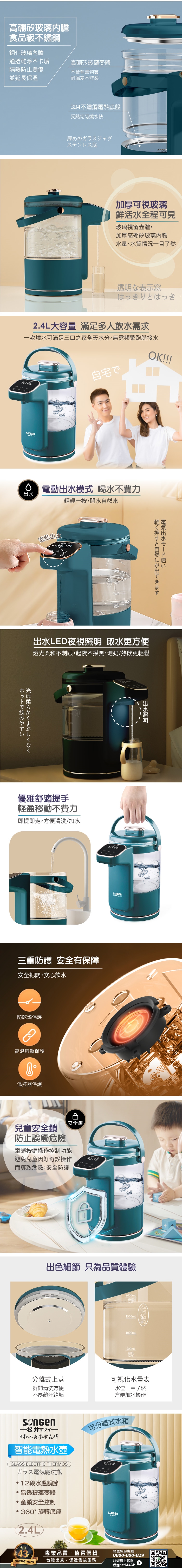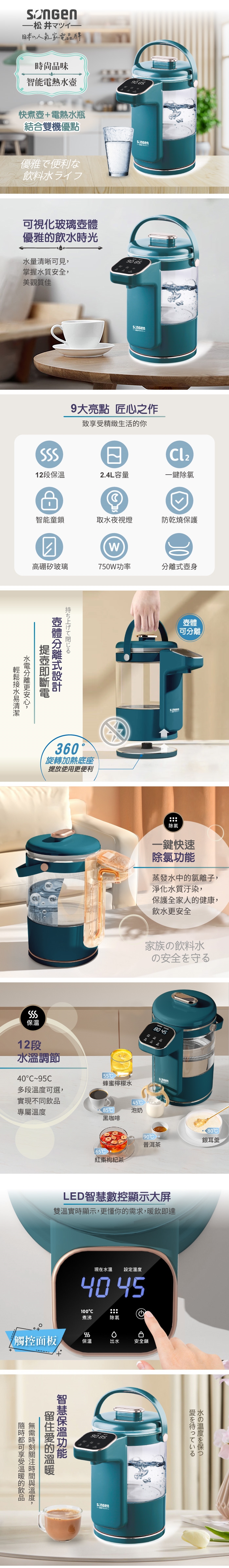 【SONGEN松井】日系可分離式水箱智能溫控玻璃電熱壺