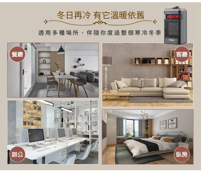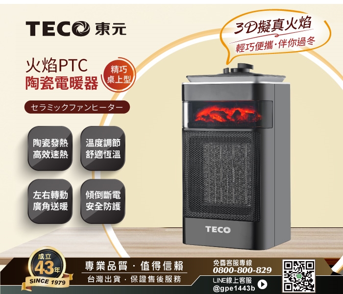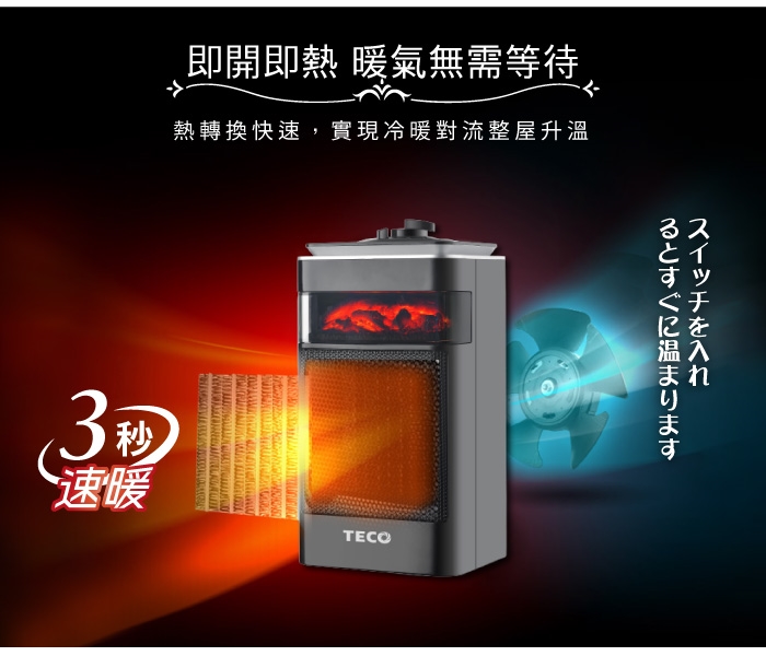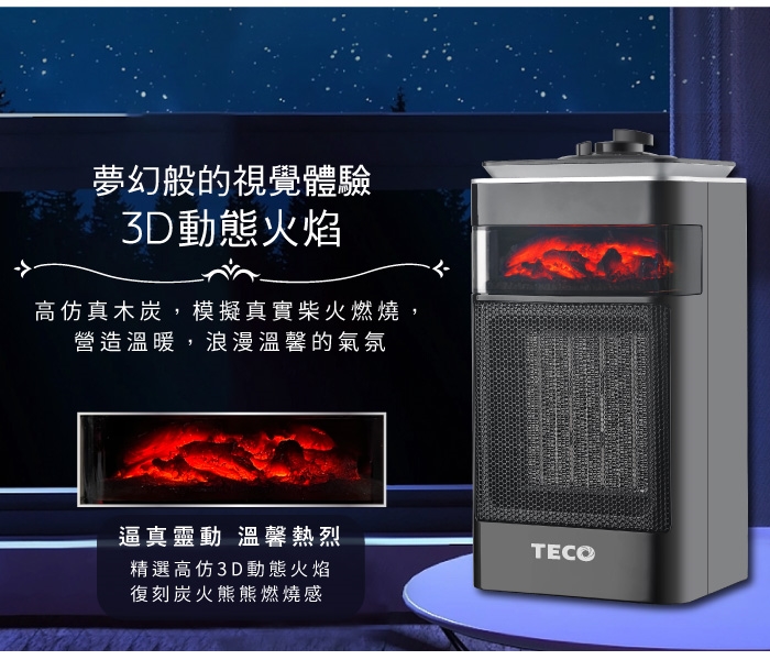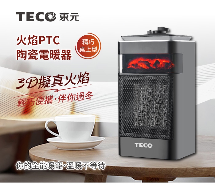 【TECO東元】3D擬真火焰PTC陶瓷電暖器