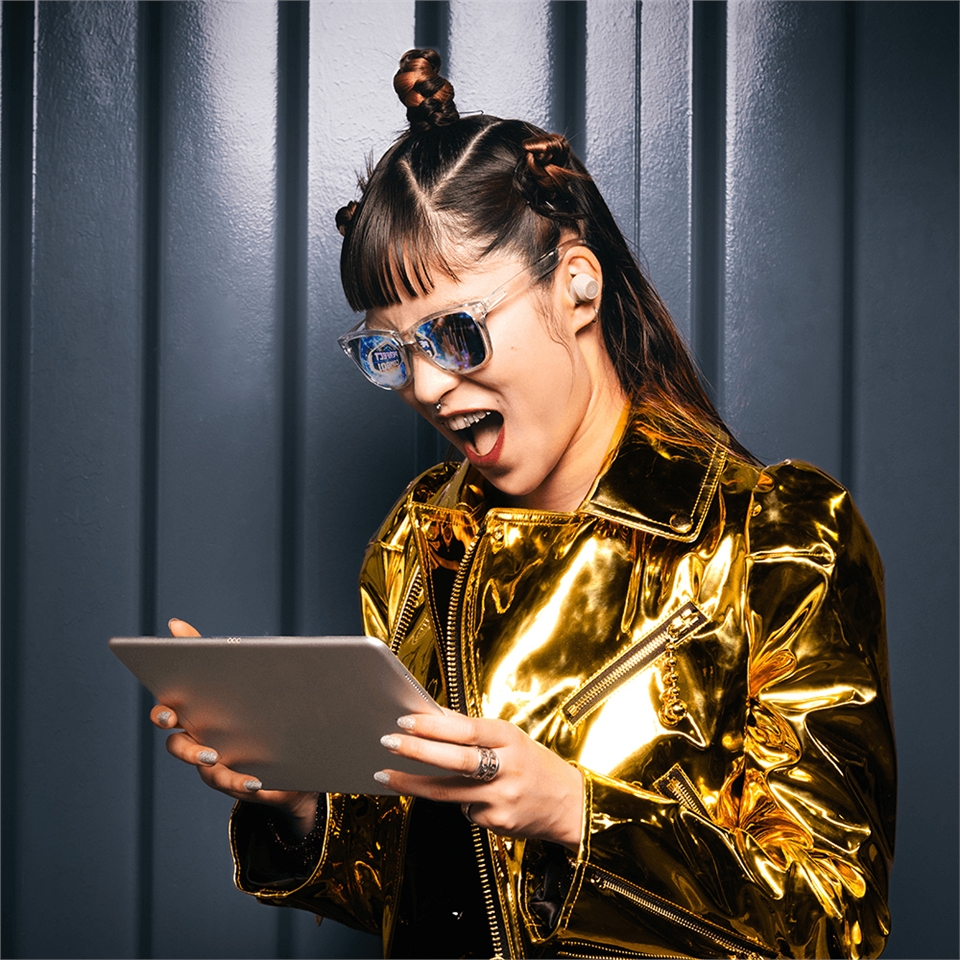結合⾼解析的深沉低⾳和降噪功能,無論⾝在何處,都能抑制周圍的噪⾳,立即沉浸在喜歡的事物中。