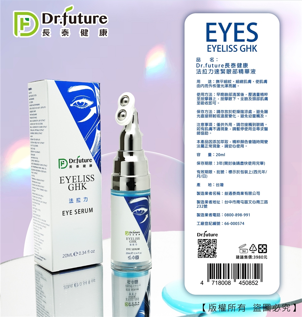 主商品:Dr.future長泰健康法拉力速緊眼部精華液(20ml/瓶)*4(不開放體驗)