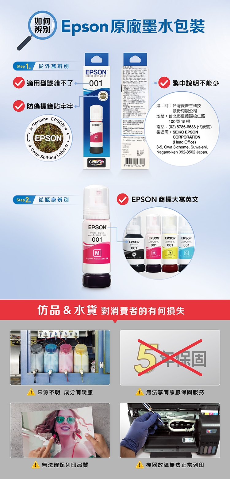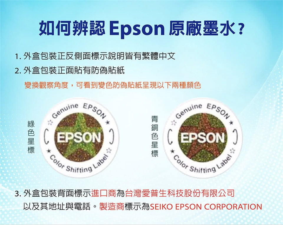 如何辨識Epson原廠墨水匣,防偽辨識四大重點: