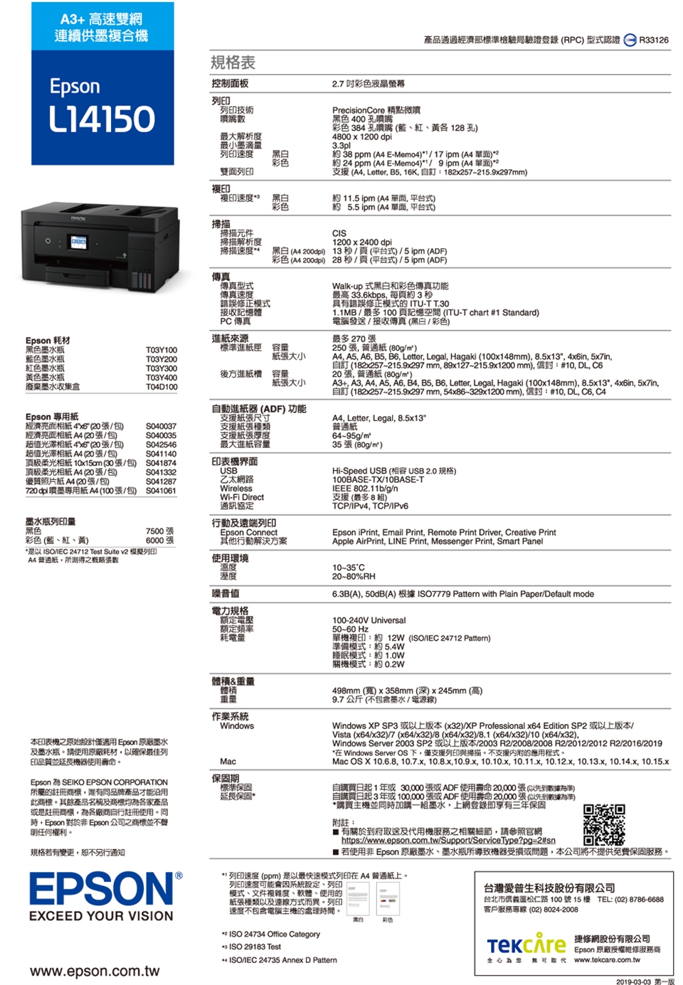 2. 加購二組墨水上網登錄送第3年保固(最低購機金額17,990元)。