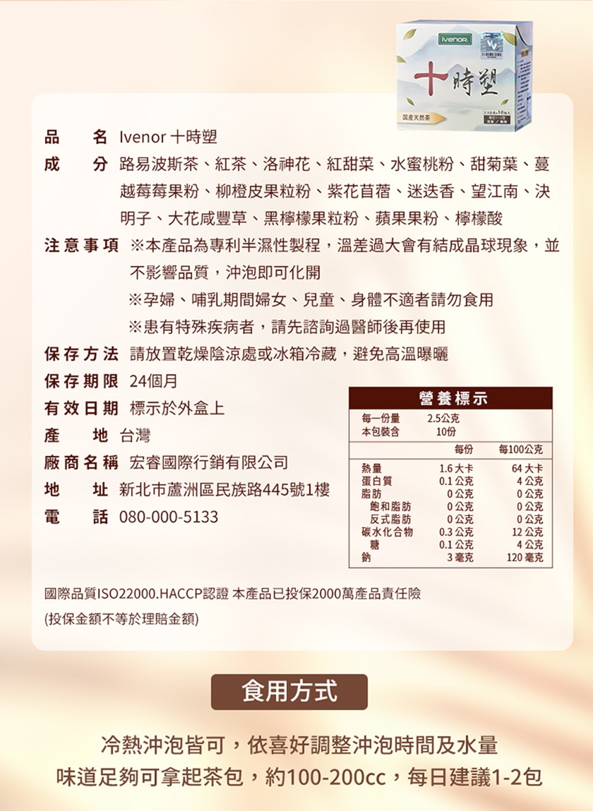 冷熱沖泡皆可,依喜好調整沖泡時間及水量,味道足夠可拿起茶包,約100-200CC,每日建議1-2包