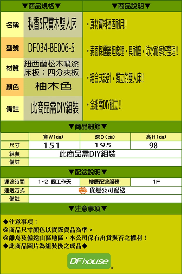名稱:《DFhouse》秋香5尺實木雙人床