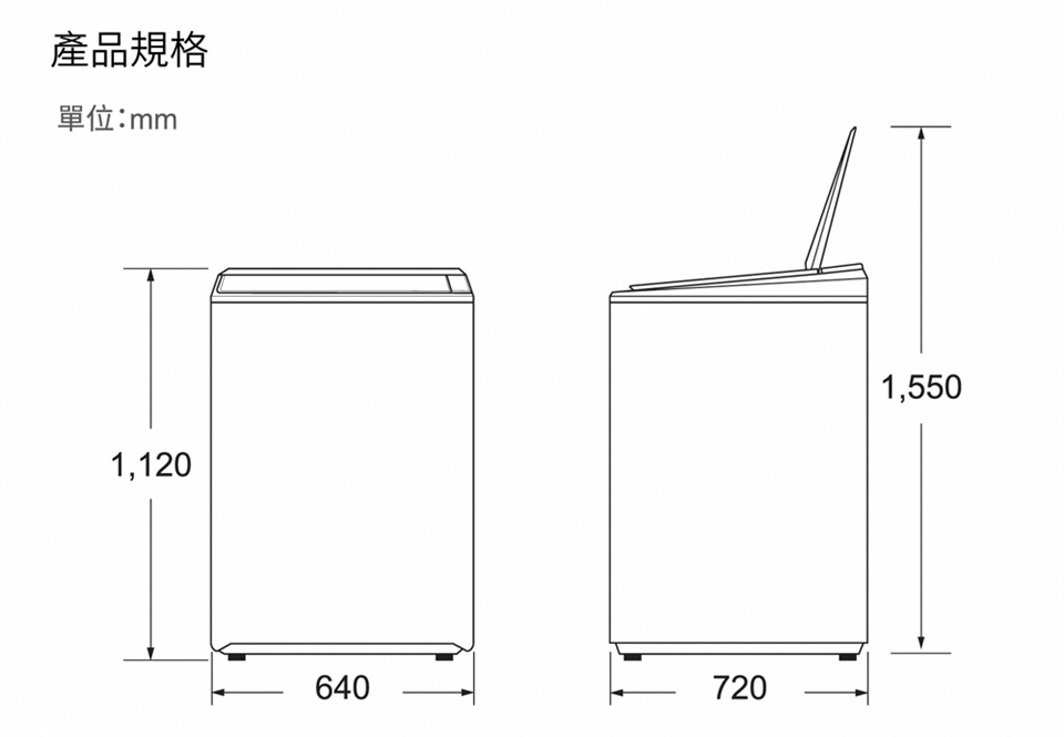 ●機體尺寸:(寬)640* (高)1120 * (深)720mm
