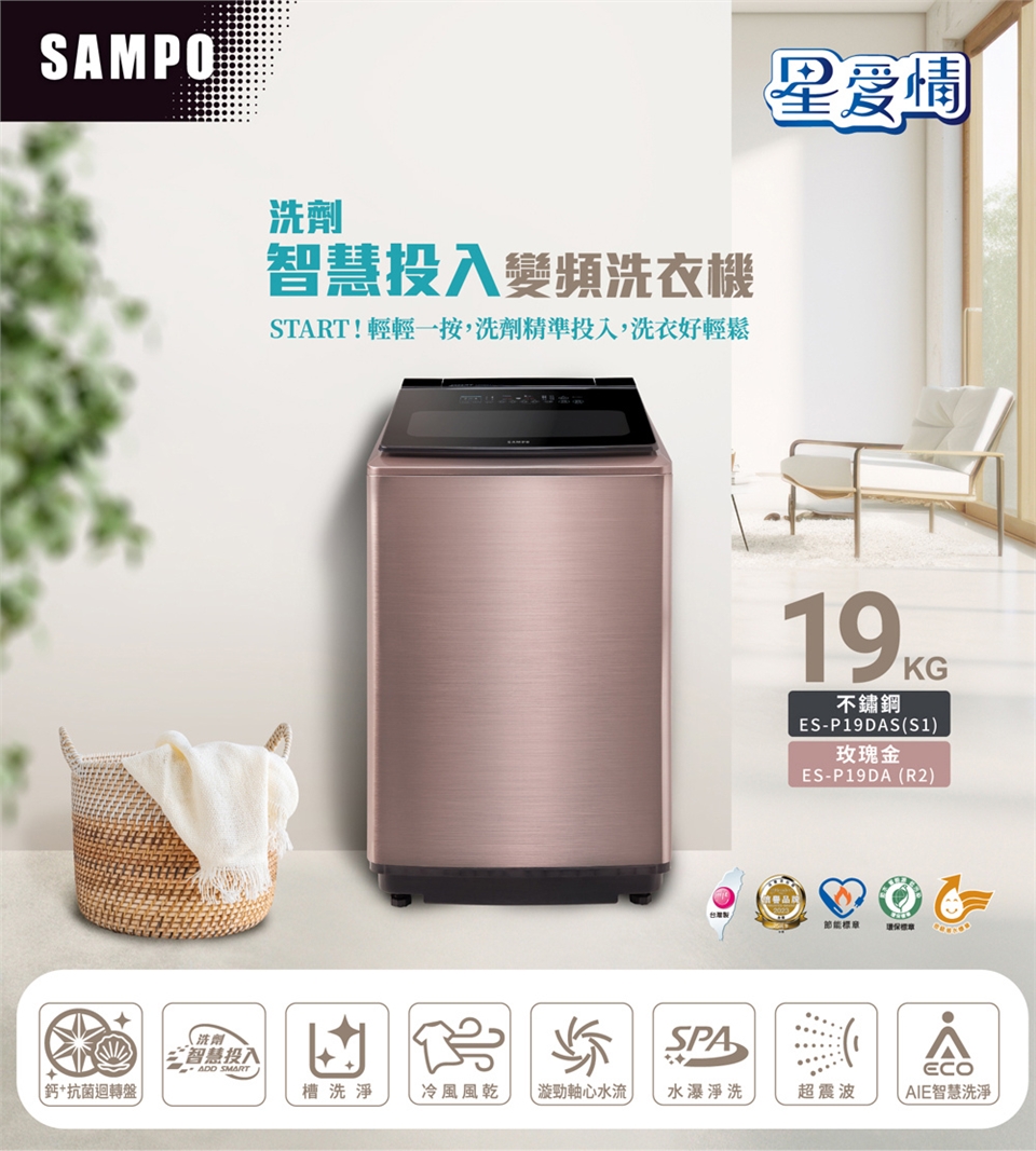 ●最大洗衣重量:19KG