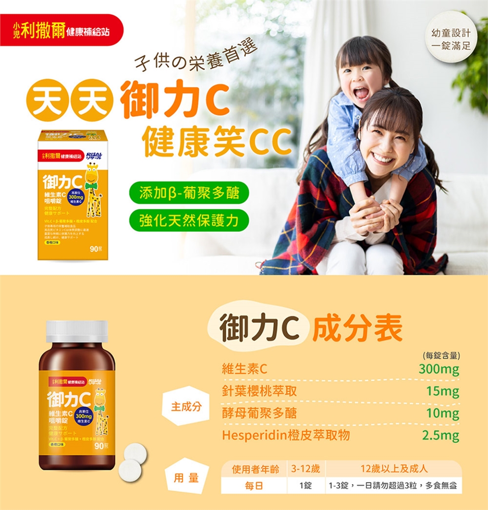 3-12歲,每日1錠;12歲以上及成人,每日1-3錠;