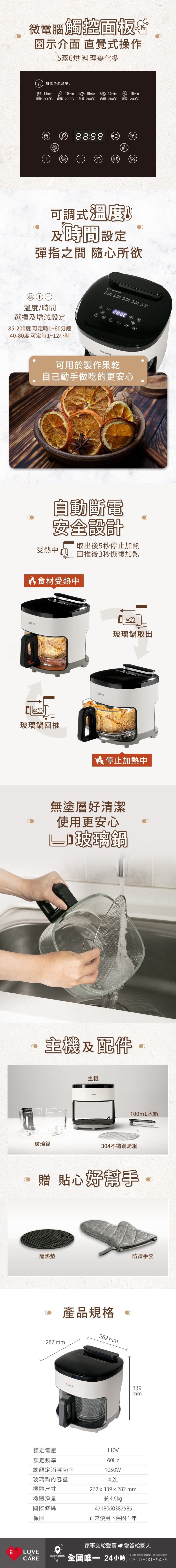 1.360度環流氣炸,碳素管加熱+高溫循環,免翻動也均勻受熱