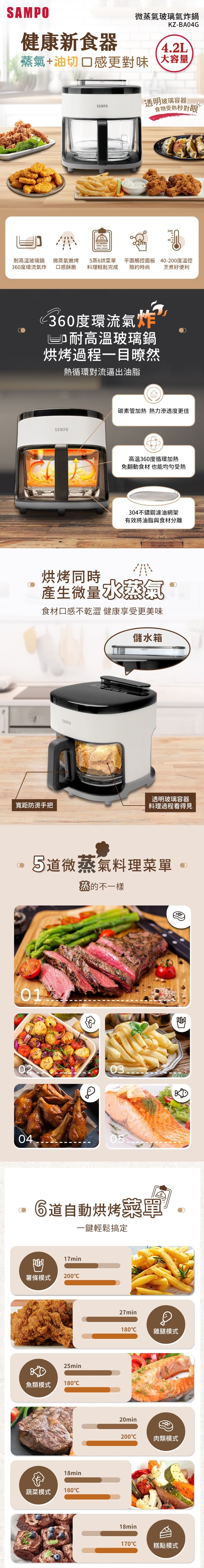 SAMPO聲寶 4.2L微蒸氣玻璃氣炸鍋 KZ-BA04G