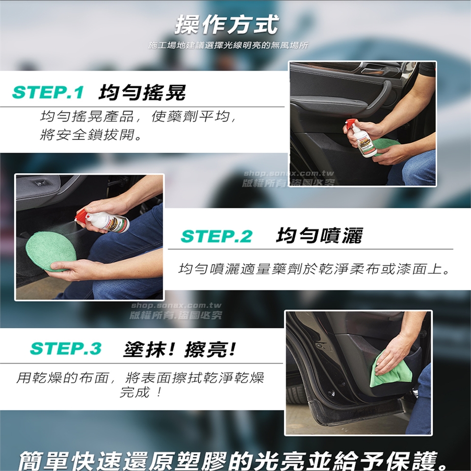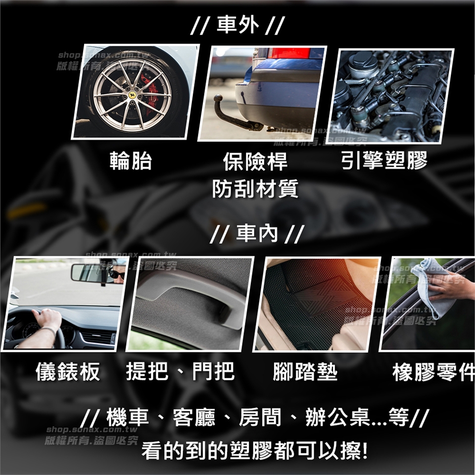 可直接均勻地噴於引擎室內乾淨的塑膠零配件。