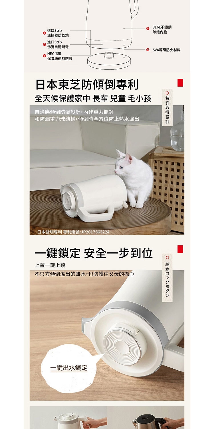★ 防傾倒設計、316不鏽鋼內膽、雙層防燙、STRIX溫控器