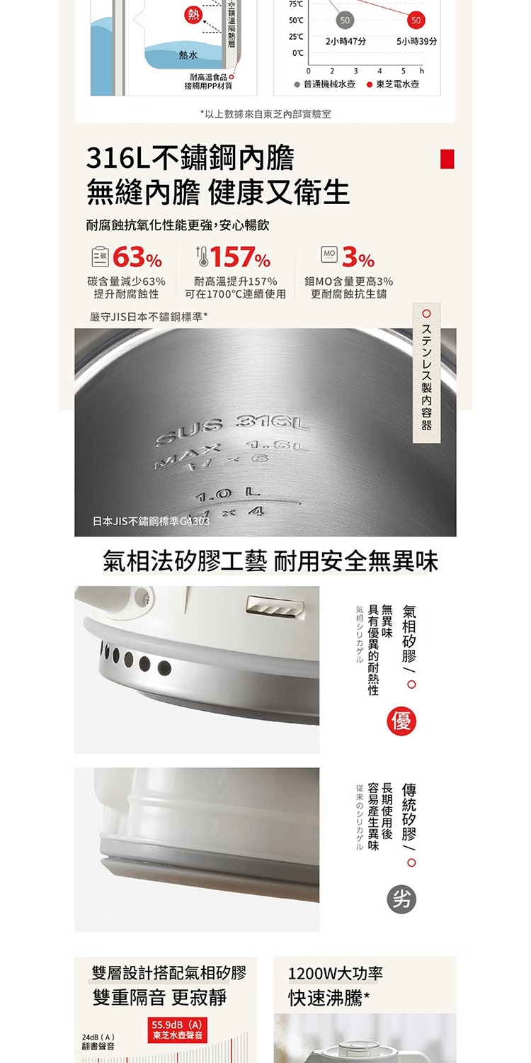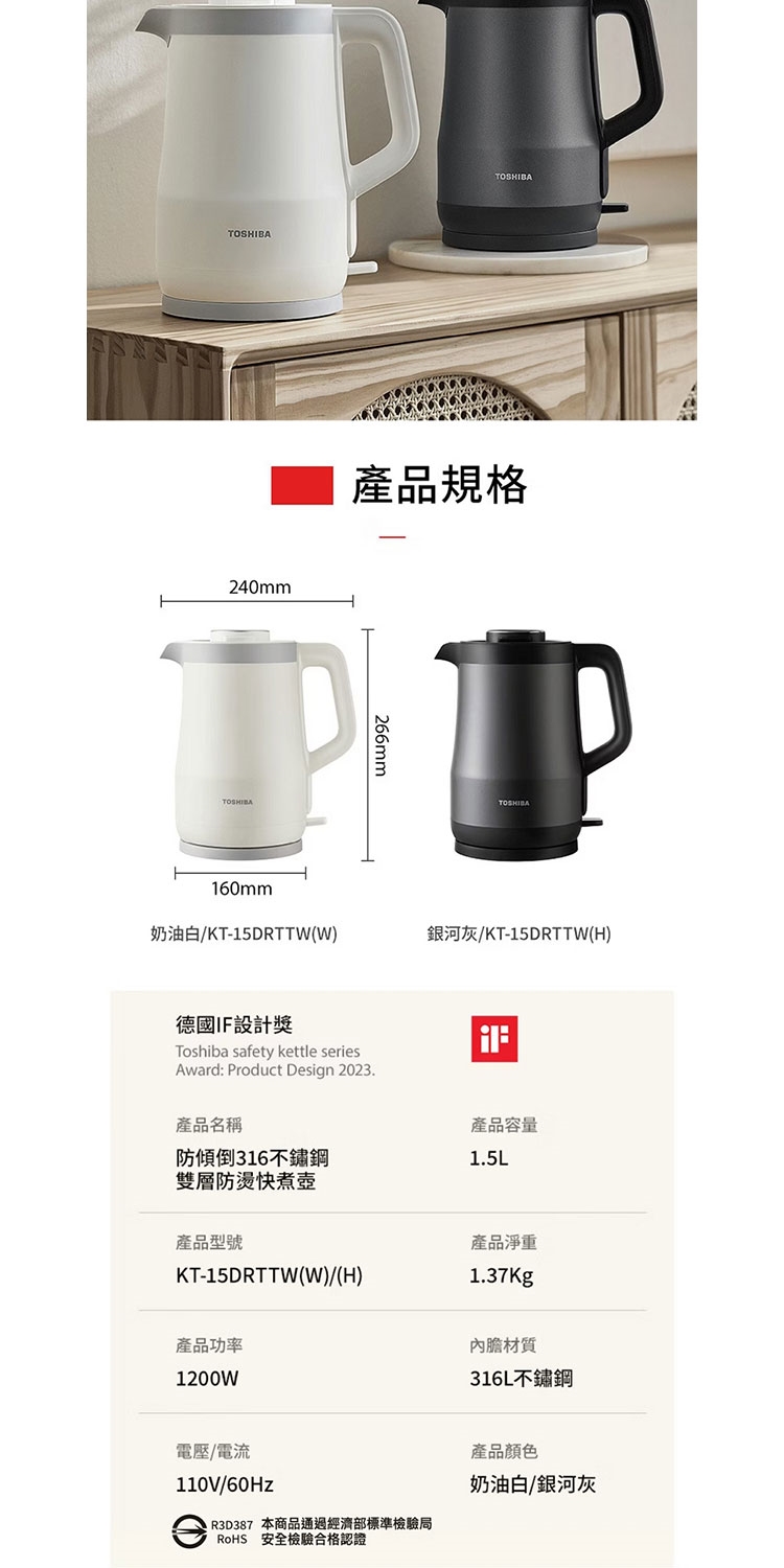 ◆ 防傾倒設計、316不鏽鋼內膽、雙層防燙、STRIX溫控器
