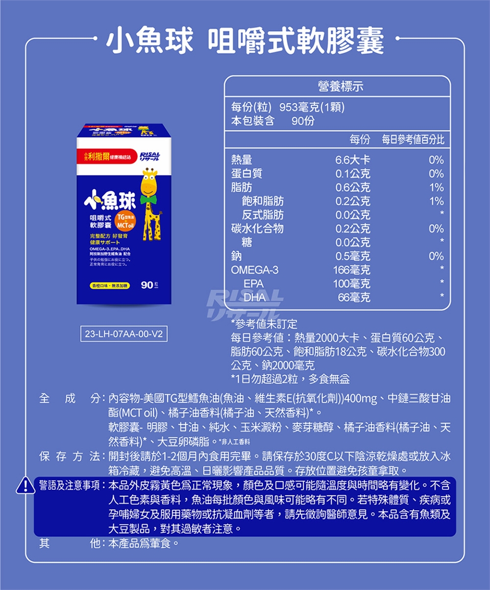 本品含有魚類及大豆製品,對其過敏者注意。