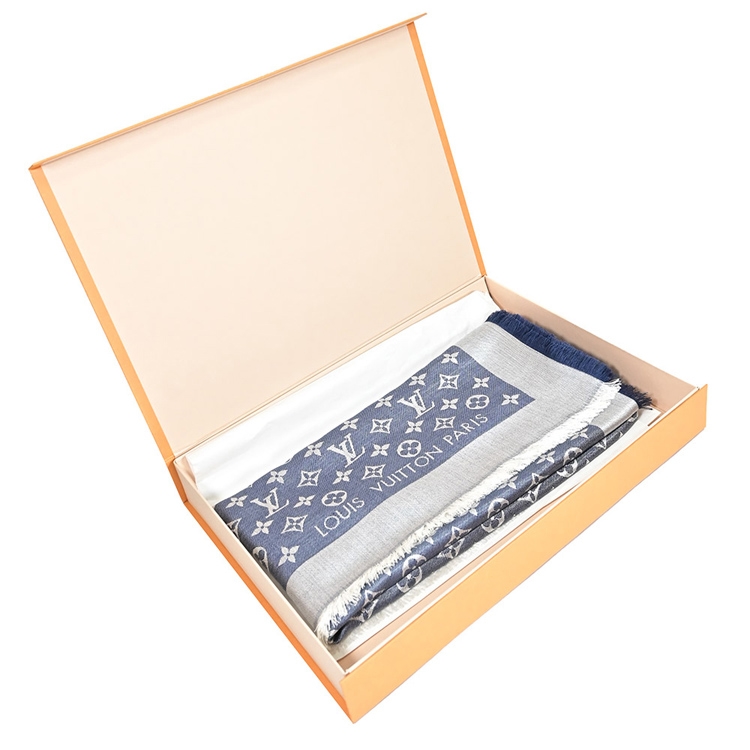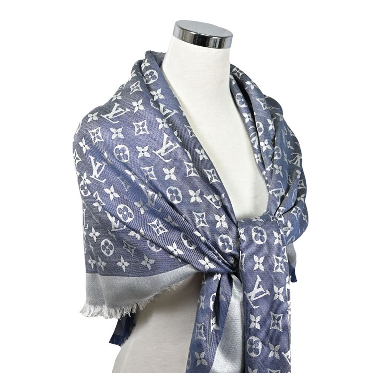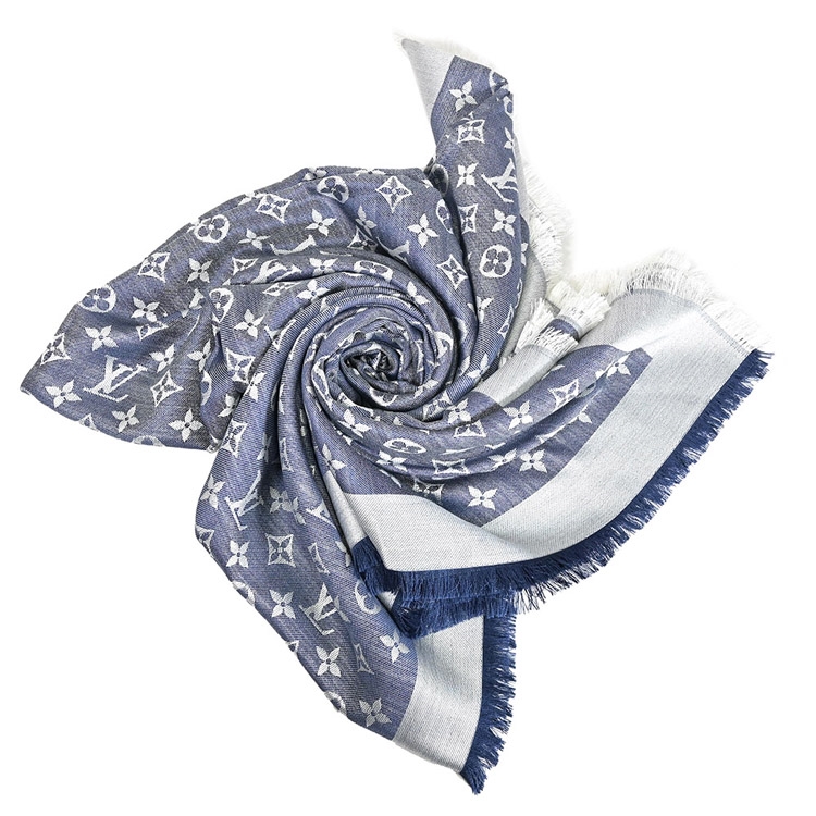 LV 這款Monogram Denim圍巾,奢華而柔軟的Monogram經典花紋圖案,並飾有路易威登字樣,質感的絲綢觸感及保暖的羊毛,可當保暖圍巾或服飾披肩配飾,或不使用時繋在包包或配件皆時尚,且既精緻又充滿都會風味,適合日常配襯。