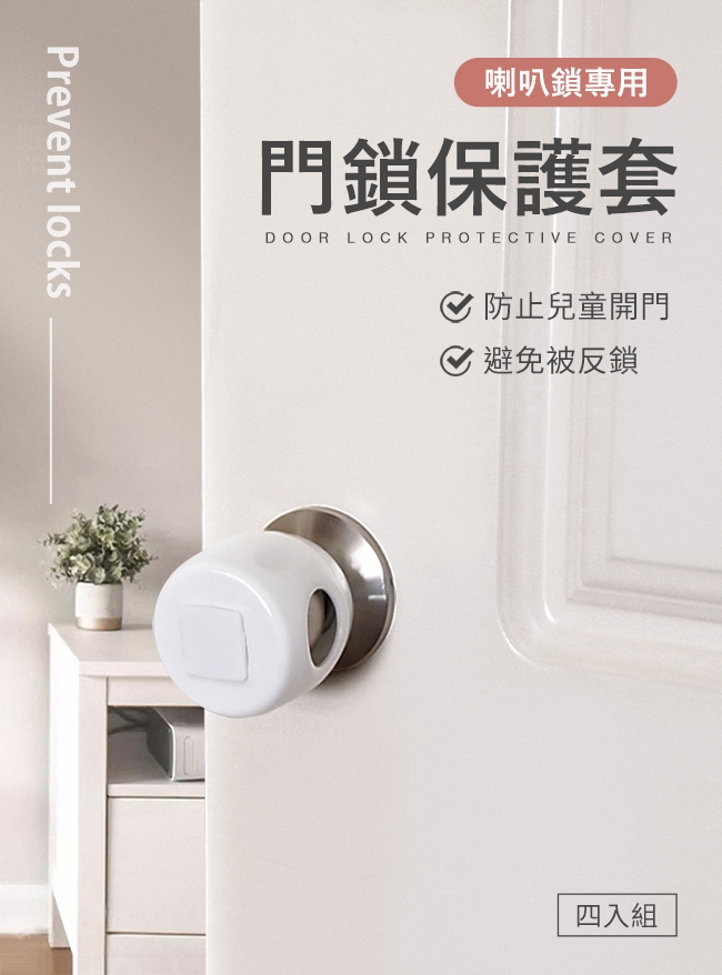 ◆ 品名:兒童防開門防反鎖喇叭鎖套4入