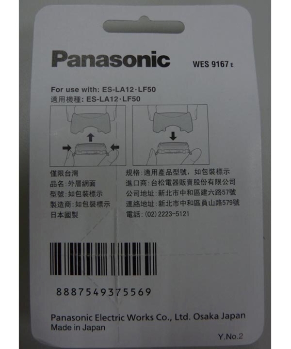 Panasonic 國際牌 刀網(適用機種:ES-LF50/ES-LF51/ES-LA12/ES-RF31/ES- RF41/ES-SF21/ES-SF31) WES9167E -
