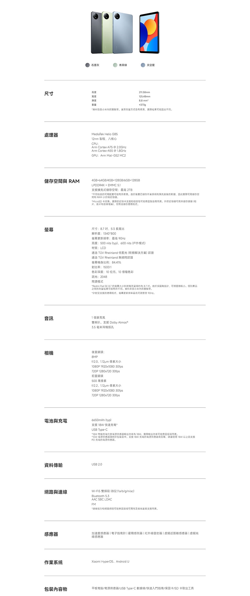 以上規格資料若有任何錯誤,以原廠所公佈資料為準