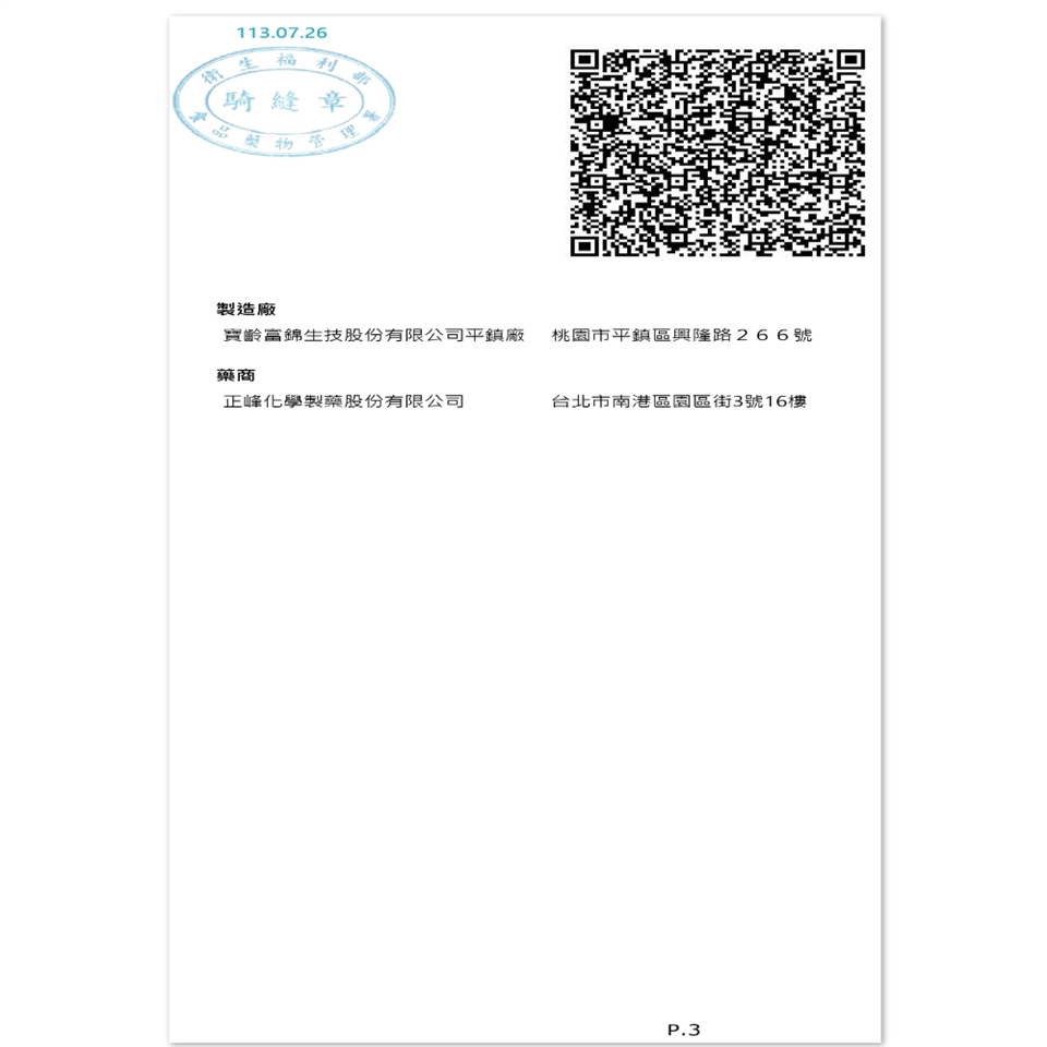 製造廠名稱:寶齡富錦生技股份有限公司平鎮廠