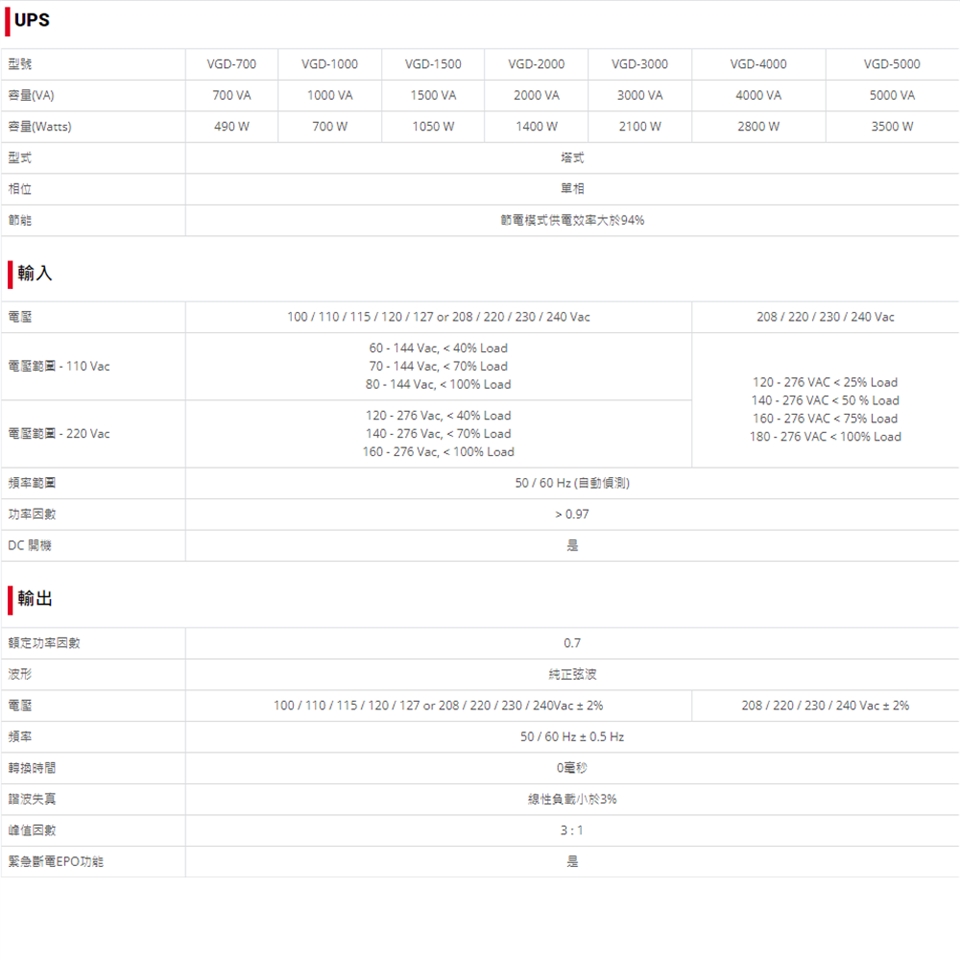 備註:請注意220V機種為輸入及輸出電壓皆為220V