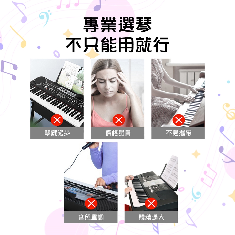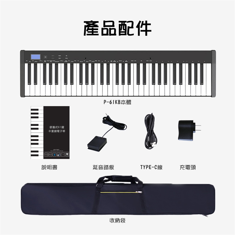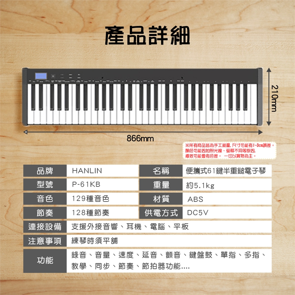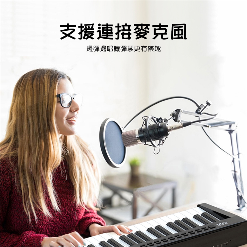 - 鍵盤採用力度鍵盤設計,平台鋼琴音色經過三層取樣疊加。