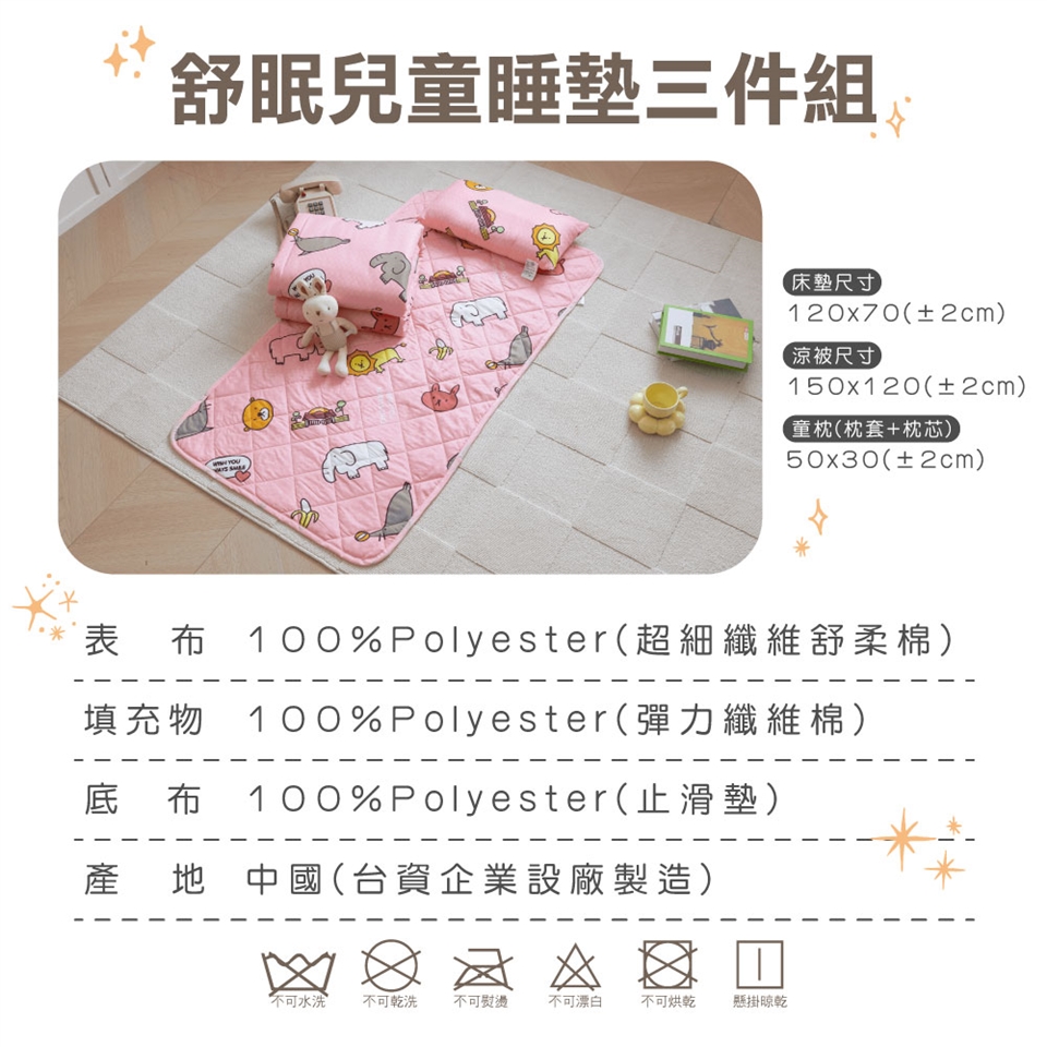 可水洗 (水溫請勿超過30度C) / 可乾洗 / 不可漂白 / 不可烘乾