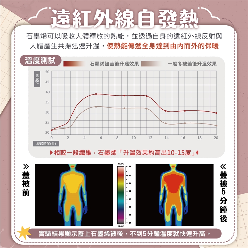 ✓ 添加石墨烯快速導熱、保暖蓄熱力高、釋放電荷,防止靜電