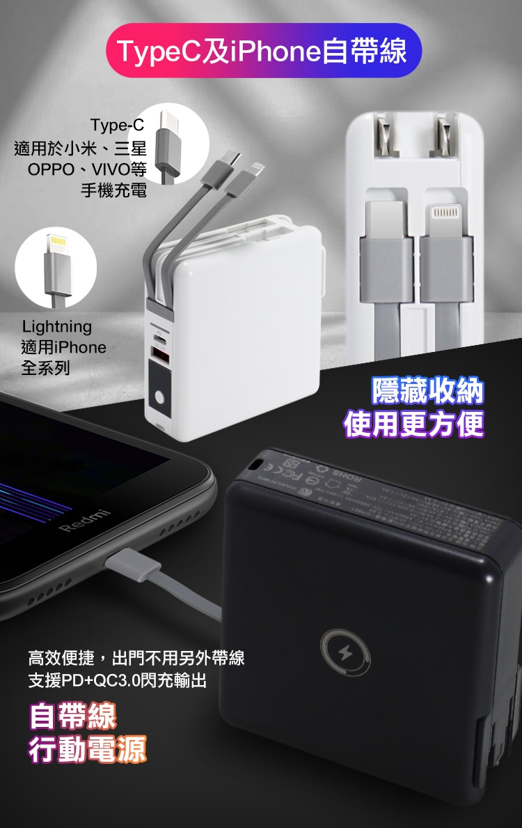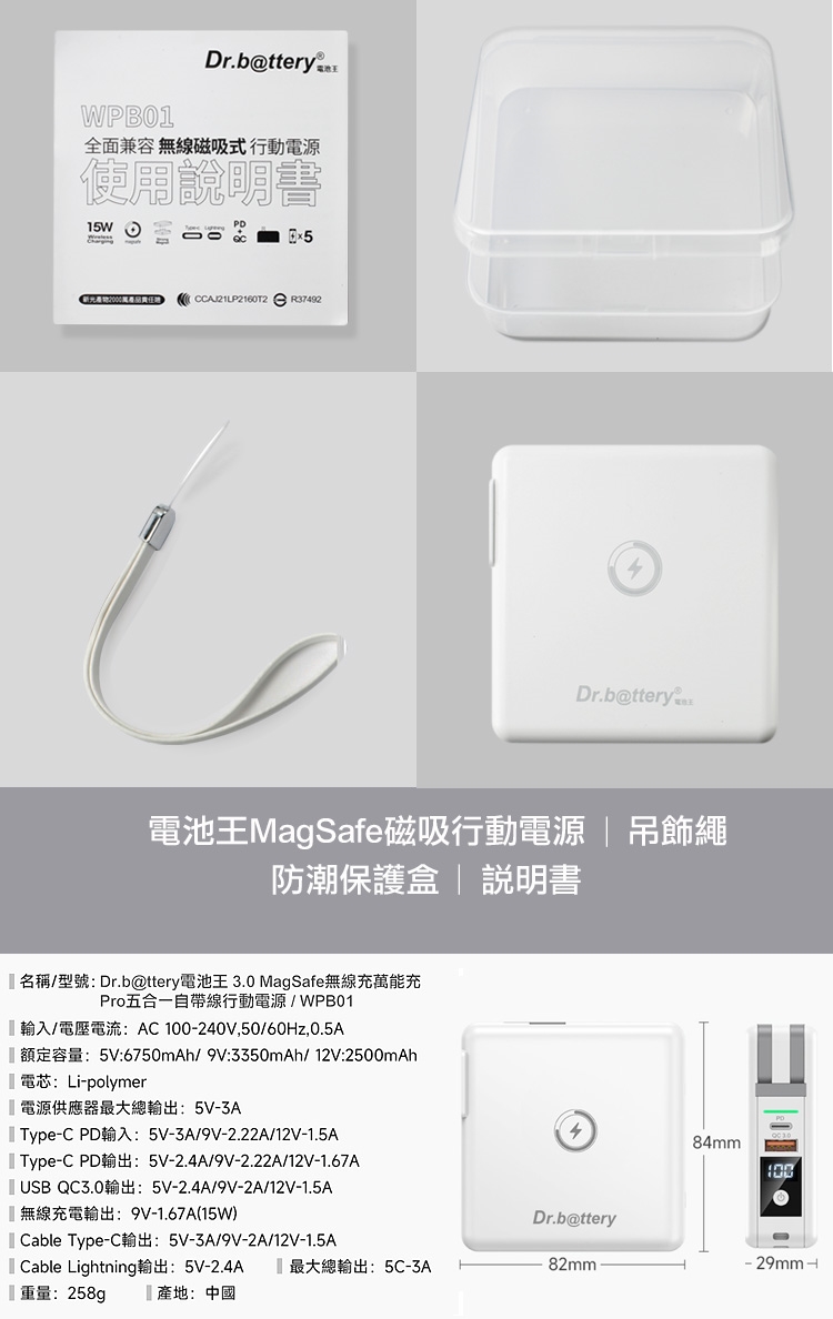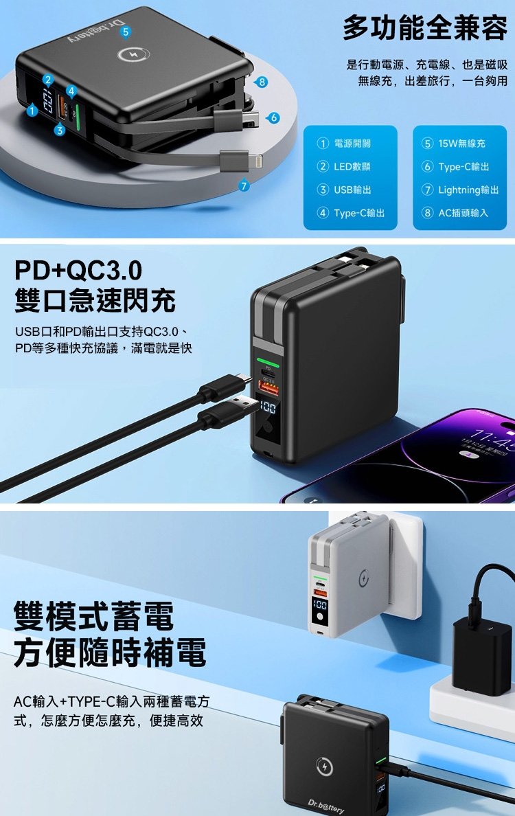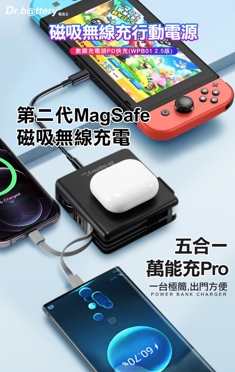 Dr.b@ttery電池王 多功能MagSafe無線充電+自帶線行動電源 +贈i14 磁吸殼
