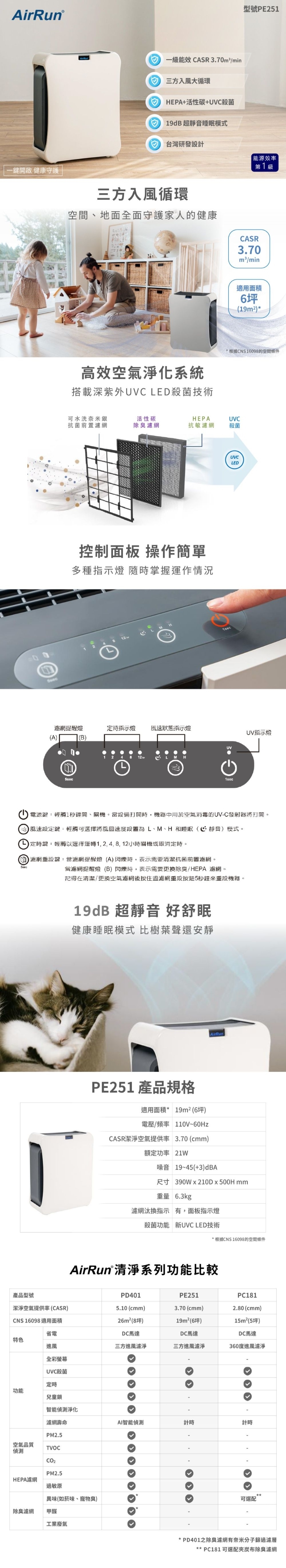 AirRun 6-12坪防護盾空氣清淨機 PE251