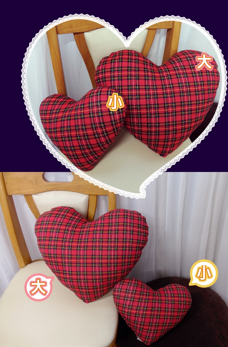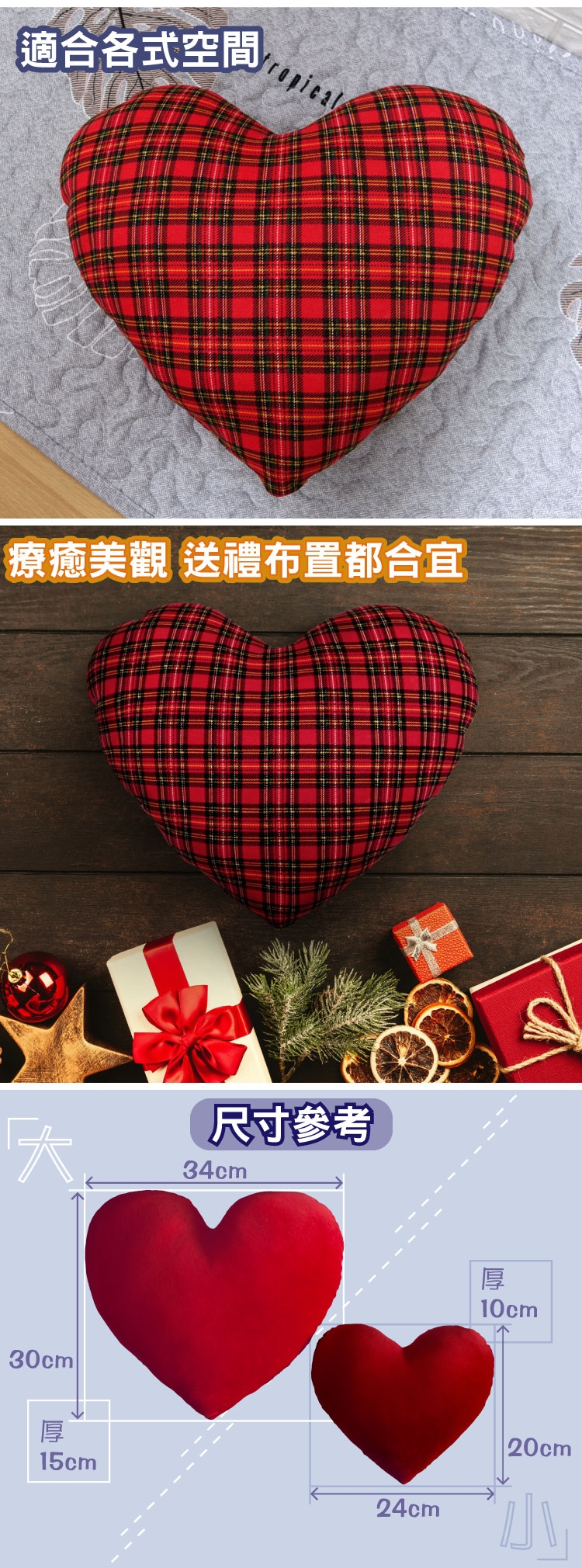 因照片多為聖誕紅格紋愛心枕-大,請注意小規格視覺比例與大規格略有差異。