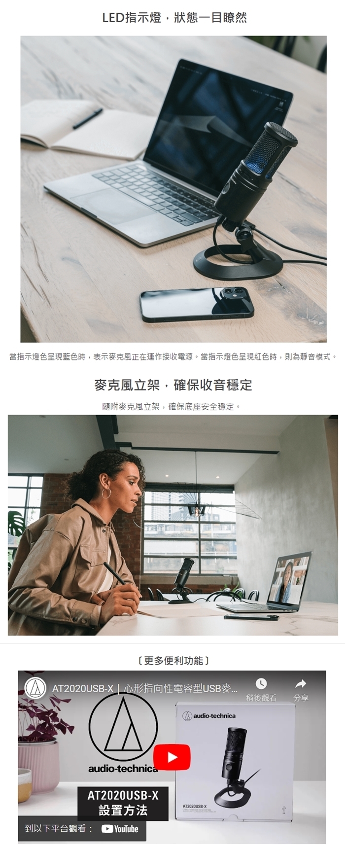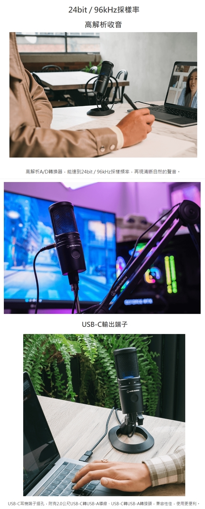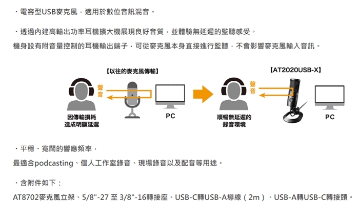 AT8702麥克風立架、5/8"-27 至 3/8"-16轉接座、・ 2.0m USB導線(USB Type-C-A)、USB轉接頭(USB Type-A-C)