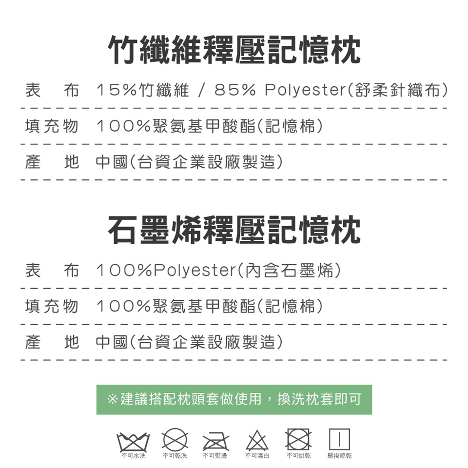 搭配枕套使用/不可機洗/不可烘乾/不可脫水/不可日曬