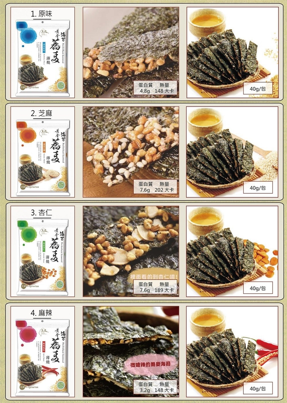 本產品含堅果、芝麻、蕎麥, 不適合對其過敏體質者食用