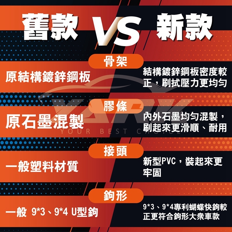 1.該產品適用雨刷接頭為9*3、9*4接頭U形鉤雨刷支臂,其餘車款皆不適用,購買前請先確認接頭款式。