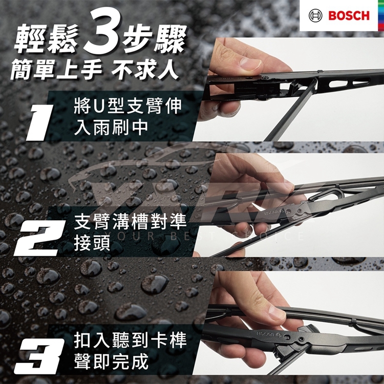 2.此雨刷為U勾式(J-hook),9x3、9x4的大小U勾皆可安裝,無另附其他轉接頭,BMW、BENZ、AUDI、TESLA等歐系車款無法安裝,部分日系車款也採用歐系雨刷勾(Sienta、CX-5二代...等)也不適用,購買前請先確認您的雨刷勾是否適用