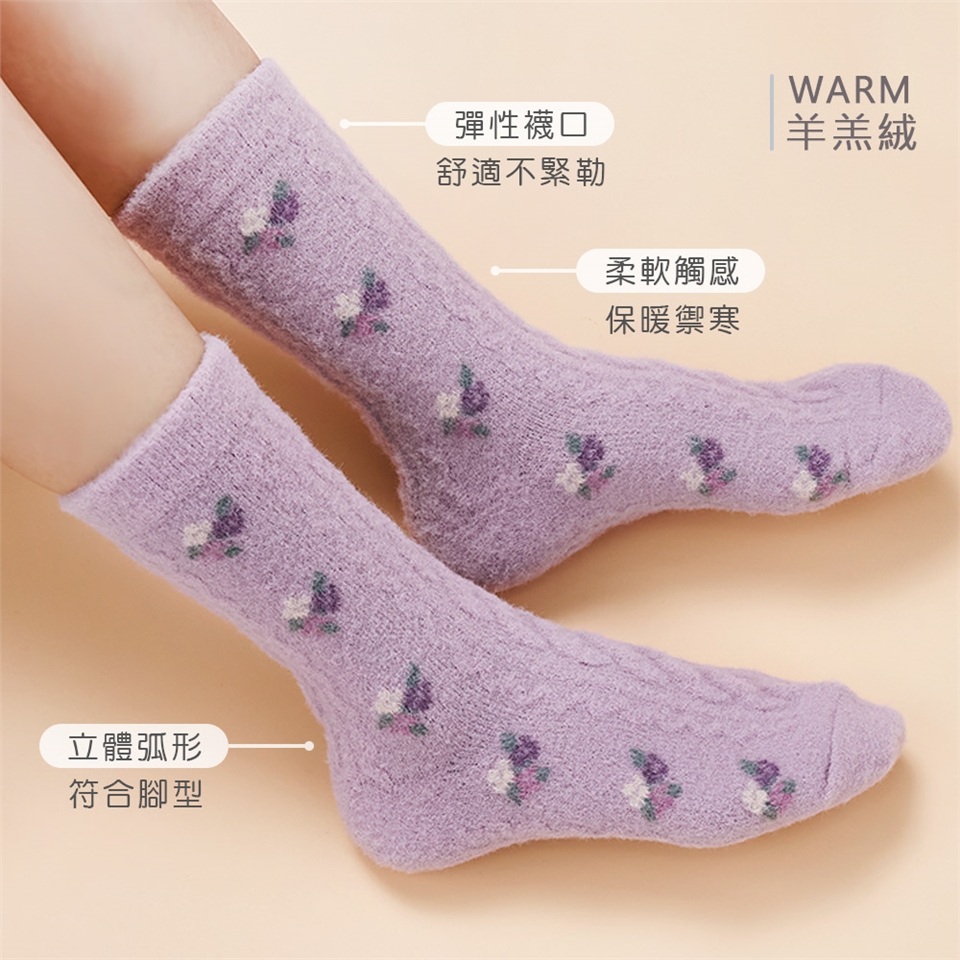 ●羊羔絨保暖襪彈性襪口 舒適保暖